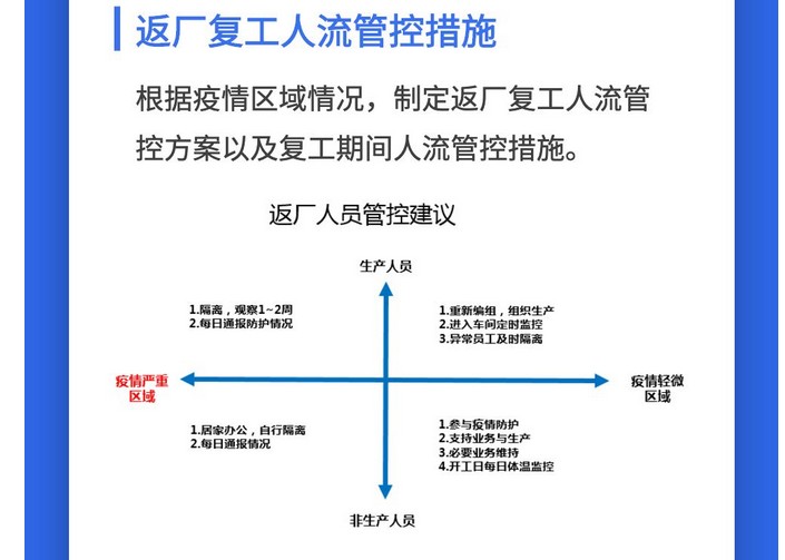 复工在即,服装企业应该这样做! 2020年2月7日 2020年9月7日 “科学防控,坚定信心,就是抗击疫情最好的疫苗。众志成城,没有PG永利集团过不去的坎!” 上班族们踏上返岗归程的日期已在眼前。如何做好防控工作,让大家安心复工,成为未来一段时期各企业工作的重中之重。 上一篇 下一篇