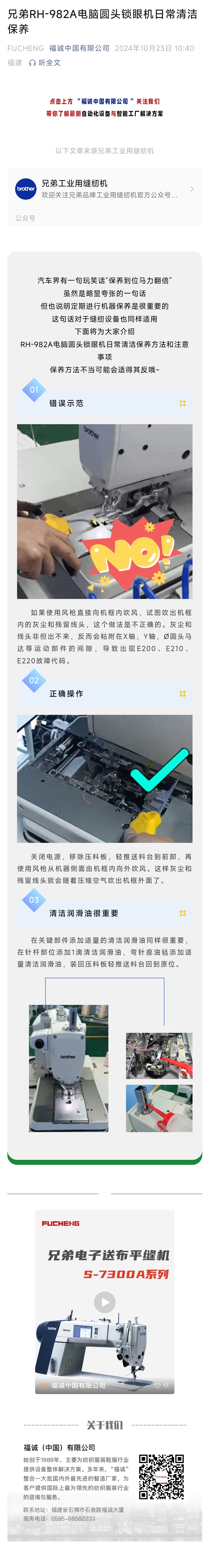 兄弟RH-982A电脑圆头锁眼机日常清洁保养